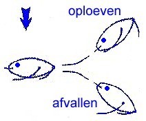 Oploeven betekent niet meer dan naar de wind toe draaien en afvallen betekent dan natuurlijk van de wind af draaien. Hierboven kan je in het plaatje zien hoe dat gaat.